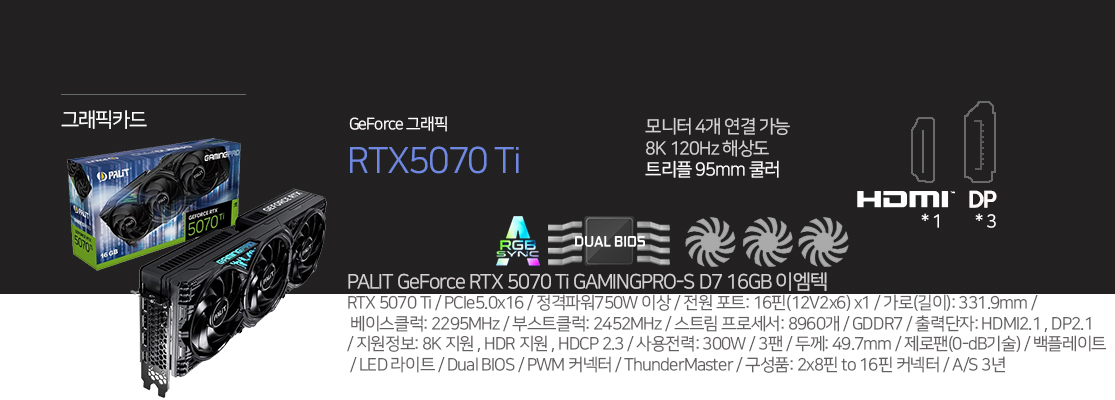인텔 코어 14세대 i5-14600K / (32GB) 삼성전자 DDR5 (16x2) / MSI MAG B760M 박격포 II DDR5 / SK hynix Platinum NVMe 1TB / CD롬 없음 / BRAVOTEC GUARDIAN 3100M V2 / PALIT RTX 5070 Ti 16GB / 7.1채널 사운드 / 2.5Gigabit LAN / 3RSYS RC1900 ARGB 쌍철봉 / 윈도우 별매 / 마이크로닉스 900W / 사은품 마우스 장패드