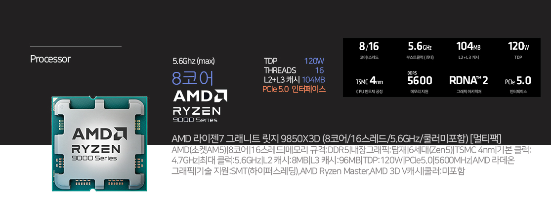컴파라 AMD 라이젠7 그래니트 릿지 9850X3D/64GB/512GB/RTX 5070 Ti (AMD X870)